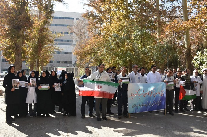 کادر درمان بیمارستانهای زیر پوشش دانشگاه علوم پزشکی مشهد در محکومیت رژیم صهیونیستی در حمله به مراکز درمانی غزه در محوطه بیمارستانهای سطح استان تجمع ضدصهیونیستی برگزار کردند. به گزارش وب دا، در این اجتماع که با محوریت ریاست و معاونت فرهنگی بیمارستانها و همراهی معاونتهای درمان و فرهنگی و دانشجویی و همچنین بسیج جامعه پزشکی با رعایت ادامه خدمات درمانی به بیماران و مراجعین بیمارستانها، برگزار شد؛ پزشکان، کادر پرستاری و پرسنل بیمارستان های دانشگاه علوم پزشکی مشهد، ضمن محکومیت اقدام وحشیانه و غیرانسانی رژیم صهیونیستی در بمباران و حمله به بیمارستان های غزه و به شهادت رساندن کودکان، زنان و مردان فلسطینی، از مقاومت مردم فلسطین حمایت کردند. کادر درمان بیمارستانهای دانشگاه علوم پزشکی مشهد همچنین آمادگی کامل خود را برای اعزام به غزه و درمان مجروحان اعلام کردند. کار اسرائیل پایان یافته و این رژیم کودک کش دارد نفسهای آخرش را میکشد در این تجمع دکتر سیدمجید حسینی، قائم مقام رییس دانشگاه علوم پزشکی مشهد در مجتمع بیمارستانی امام رضا(ع)، اظهار کرد: هیچ وقت در طول تاریخ به اندازه حال حاضر جبهه حق از باطل مشخص نبوده و اکنون با اتفاقاتی مواجهیم که در سطح جهان علیه اسرائیل غاصب موضعگیری شده و معتقدیم که جبهه حق علیه باطل پررنگتر شده است. وی تصریح کرد: ما میبینیم که حق و حقوق شهروندان فلسطینی پایمال شده و در چنین وضعیتی سکوت به هیچ عنوان جایز نیست. قائم مقام رییس دانشگاه علوم پزشکی مشهد در مجتمع بیمارستانی امام رضا(ع) با بیان اینکه من به اتفاق خانوادهام آماده هستیم که به غزه برویم تا متناسب با تخصص و آموزشهایی که فرا گرفتیم به مردم مظلوم غزه خدمت نماییم، خاطرنشان کرد: ما سابقه خدمت خانوادگی در بحرانها را داشتهایم و خاطرات بسیارخوبی از خدمت به همنوعانمان داریم و این آماده ایم تا در غزه بهصورت خانوادگی به مردم مظلوم و بیدفاع فلسطین خدمت نماییم. دکتر حسینی افزود: ما معتقدیم که کار اسرائیل پایان یافته و این رژیم کودک کش دارد نفسهای آخرش را میکشد و قدرتی برای مقابله با جبهه مقاومت ندارد و چون نمیتواند با آنها مبارزه کند به کشتار زنان بیگناه و کودکان معصوم و تخریب منازل، بیمارستانها، مدارس و دیگر مکانها میپردازد. اسرائیل غاصب در این روزها خوارتر، ذلیلتر و منفورتر از قبل شده است در ادامه این تجمع دکتر رضا اخوان، معاون درمان بیمارستان امام رضا(ع)، گفت: اقدامات وحشیانه رژیم کودک کش و غاصب اسرائیل همیشه محکوم بوده و ما به مردم مظلوم فلسطین میگوییم که همواره در کنارتان هستیم. وی افزود: طوفان الاقصی جراحت بزرگی به اسرائیلیها وارد آورده، جراحتی که درمان شدنی هم نیست و به همین جهت چون تاب و توان این ضربه بزرگ را ندارد دست به اقدامات وحشیانه زده و تاکنون بیش از ١۰ هزار فلسیطنی مظلوم و بیگناه را به شهادت رسانده که بیش از نیمی از آنها زن و کودک هستند، زنان و کودکانی که نقشی در جنگ نداشتند، اما قربانی جنایات وحشیانه اسرائیلیها شدند. معاون درمان بیمارستان امام رضا(ع) با ذکر این نکته که اسرائیل غاصب در این روزها خوارتر، ذلیلتر و منفورتر از قبل شده است، تأکید کرد: ما یقین داریم که وعده الهی در پیروزی نهایی مستضعفان و مظلومان بر ظالمان و جنایتکاران نزدیک است و معتقدیم تداوم مبارزه قاطعانه مظلوم با ظالم، پیروزی مردم قهرمان و مقاوم فلسطین را رقم خواهد زد. دکتر اخوان بیان کرد: جامعه پزشکی نشان دادند در هر کجا که نیاز باشد حضوری پررنگ و ثمربخش دارند و نمونه بارز آن در جبهه مبارزه با ویروس منحوس کرونا بهخوبی دیده شد و این سفیدپوشان خدوم برای یاریرسانی به فلسطینیان مظلوم هم آماده حضور در غزه هستند. جامعه پزشکی جنایات وحشیانه اسرائیل غاصب و حمله به بیمارستانهای غزه را محکوم میکنند در بخش دیگری از این تجمع دکتر محمدحسن منفرد، معاون توسعه بیمارستان امام رضا(ع)، تصریح کرد: جامعه پزشکی جنایات وحشیانه اسرائیل غاصب و حمله ب