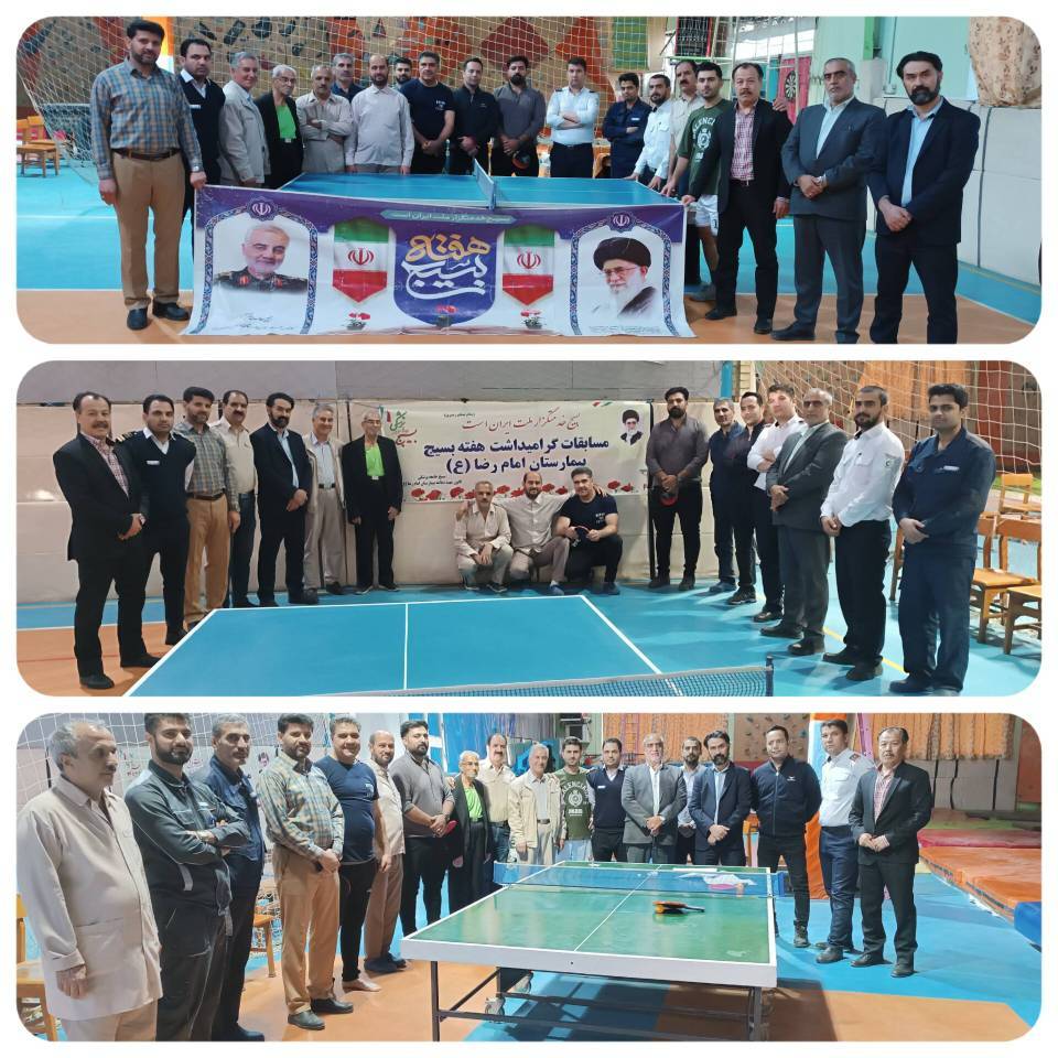 برنامه های در نظر گرفته شده به مناسبت هفته بسیج در این بیمارستان شامل برنامه های فرهنگی، ورزشی و معنوی خواهد بود. هم راستا با رسالت اصلی بسیج، در ترویج فرهنگ ایثارگری و شهادت و زنده نگه داشتن روحیه انقلابی در فضای جامعه ، واحد بسیج بیمارستان امام رضا (ع) برنامه های متنوع فرهنگی و معنوی؛ از جمله « فضاسازی با هدف تداعی فضای جبهه و جنگ » در بخش لابی بیمارستان 610 بیمارستان امام رضا (ع)، « غنی سازی فرهنگی کتابخانه واحد بسیج بیمارستان با خرید کتب جدید و بروزرسانی منابع فرهنگی این فضا » ، « توزیع نبات متبرک در بخش هایی از بیمارستان امام رضا(ع) با حضور خدام حرم مطهر رضوی» و « تشرف جمعی از همکاران بیمارستان به حرم مطهر» را در برنامه دارد. همچنین در بخش مسابقات ورزشی، رقابت هایی با هدف ایجاد همدلی و صمیمیت بیشتر در بین کارکنان مرکز در دو بخش آقایان و بانوان برگزار خواهد کرد.