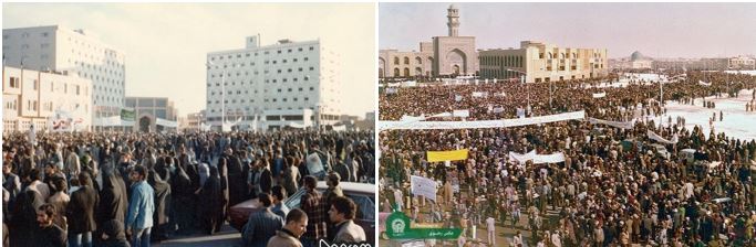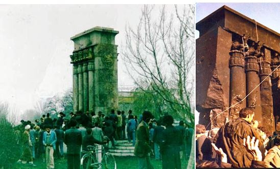 سر نگونی مجسمه شاه در میدان شاه مشهد که به میدان شهدا نام گذاری شده است |