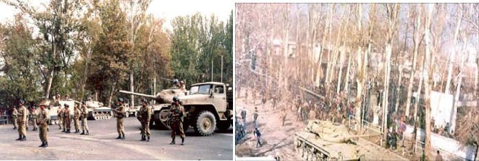 تصرف تانکها وبه آتش کشیده شدن آنها، توسط مردم خشمگین از تجاوز وکشتار مردم |
