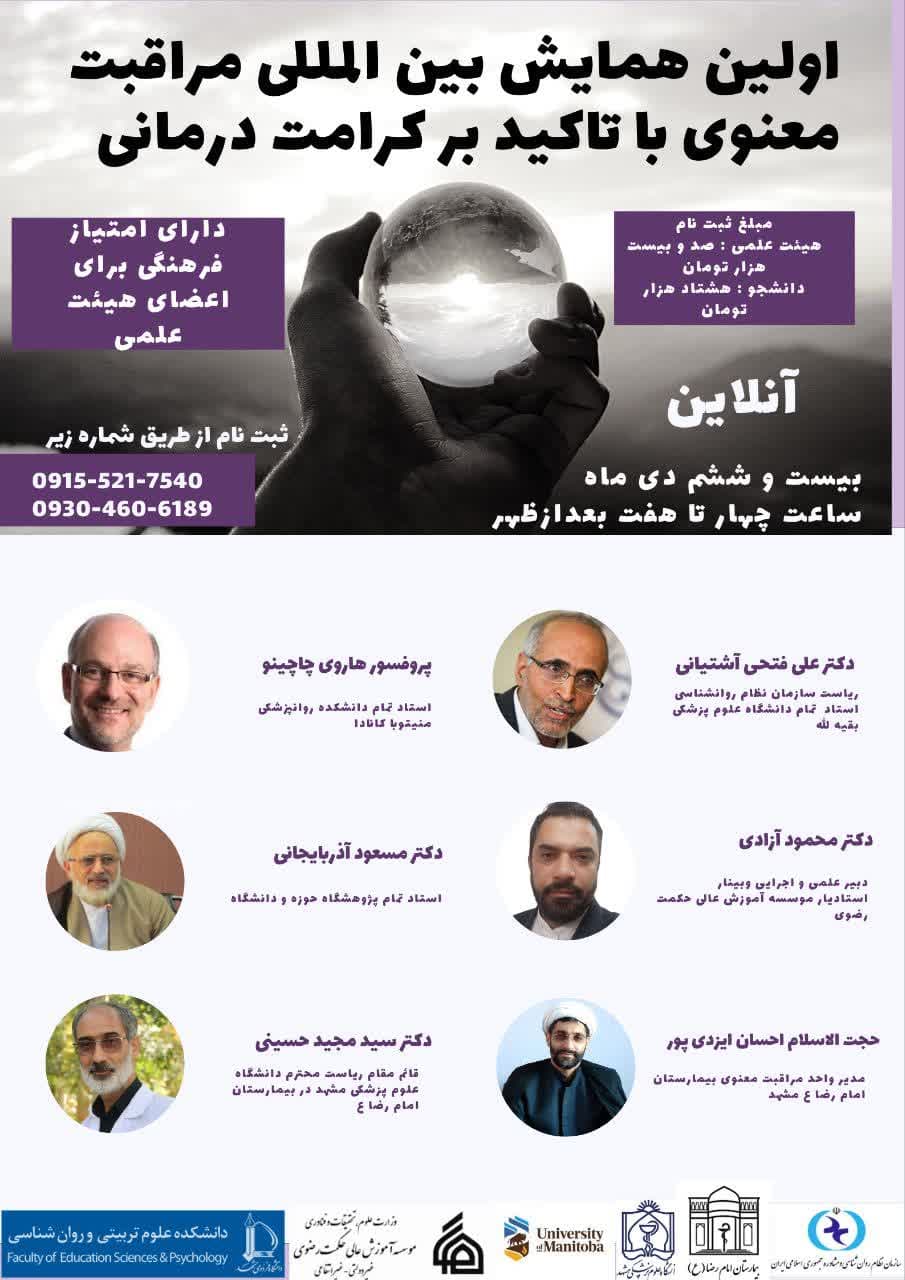 اولين همايش بين المللي مراقبت معنوي، با تأکيد بر کرامت درماني در تاريخ بيست وششم دي ماه از ساعت 14 الي 9 عصردربستر اسکاي روم برگزارمي شود. به گزارش وبدا،اولين همايش بين المللي مراقبت معنوي به همت مرکزمشاوره و روانشناسي مؤسسه آموزش عالي حکمت رضوي و با همکاري سازمان نظام روان شناسي، دانشگاه منيتوبا کانادا، دانشگاه علوم پزشکي مشهد، مجتمع آموزشي،پژوهشي ودرماني امام رضا(ع)،دانشکده علوم تربيتي و روانشناسي فردوسي وبا حضورپرفسورهاروي پاچينو استاد تمام دانشکده روانپزشکي منيتوبا،دکترعلي فتحي آشتياني رئيس سازمان نظام روانشناسي ومشاوره واستاد تمام دانشگاه بقيه الله، حجت الله الاسلام دکتر مسعود آذربايجاني استادتمام پژوهشگاه و حوزه،دکترمحمدآزادي استاديارمؤسسه آموزش عالي حکمت رضوي ، دکترسيد مجيد حسيني قائم مقام رياست دانشگاه علوم پزشکي مشهد در بيمارستان امام رضا(ع) و حجت الاسلام احسان ايزدي پورمدير واحد مراقبت معنوي مجتمع آموزشي، وهشي و درماني امام رضا(ع)، به منظورانتقال اطلاعات مرتبط با دانش مراقبت و سلامت معنوي جهت بهره مندي علاقمندان از اين اطلاعات دربخش هاي مختلف درماني برگزار خواهد شد. نخستين مرکز مراقبت معنوي در دانشگاه علوم پزشکي مشهد سال 1401جهت ارائه خدمات مراقبت معنوي به بيماران و خانواده هاي آنها افتتاح گرديد. مراقبت معنوی فعالیت هایی است که در،راستای پاسخ گویی به نیازهای معنوی بیماران شامل نیازبه دعا وعبادت،مراسمات مذهبی ورفع تعارضات آن ها انجام می گیرد. عمده درخواست های بیماران که به عنوان دغدغه های آنان محسوب می شود؛ کمک و تسهیل گری درانجام امورعبادی ومذهبی است، که موردغفلت واقع گردیده است.لذا با توجه به اینکه جامعه ما یک جامعه مذهبی است، بیماربه واسطه بیماری خود به امورعبادی که معتقد ومقید بود واکنون ترک شده، خودرا گناهکاریا موردعقوبت خدامی داند که توفیقات انجام امورعبادی ودینی ازوی سلب شده واحساس دورشدن ازخداوند، معنویت و باورهای مذهبی خود می کند که منشأ آن اضطراب است. گفتني است، اين همايش داراي امتياز فرهنگي براي اعضاي هيأت علمي و نيز ارائه گواهي نامه معتبر است. متقاضيان جهت ثبت نام وشرکت در همايش فوق مي توانند با شماره هاي 09155127450و 09304606189 تماس، پيامک و يا فضاي مجازي ايتا، ارتباط حاصل نمايند. |